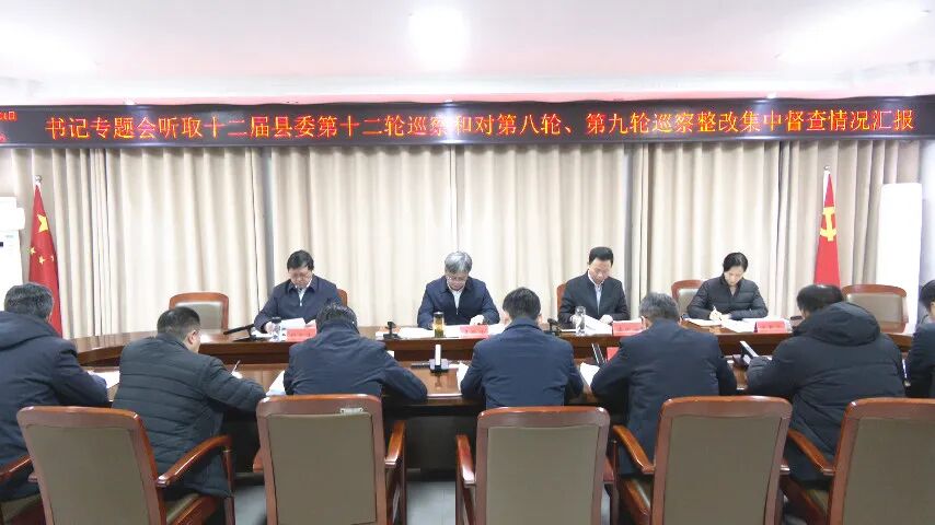 12月24日,县委书记王跃峰主持召开书记专题会议,听取十二届县委第十二轮巡察和对第八轮、第九轮巡察整改集中督查情况汇报。县领导王振海、胡高峰、张春燕出席会议。