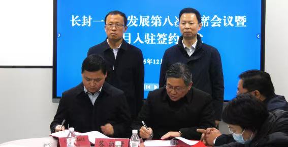 会上,长垣市飞地产业发展服务中心与上海建中医疗器械包装有限公司中原生产基地项目和河南台鹏电子科技有限公司半导体元器件生产项目进行签约。与会人员还就飞地园区产业项目进展、招商引资和企业用工等问题进行了深入交流。