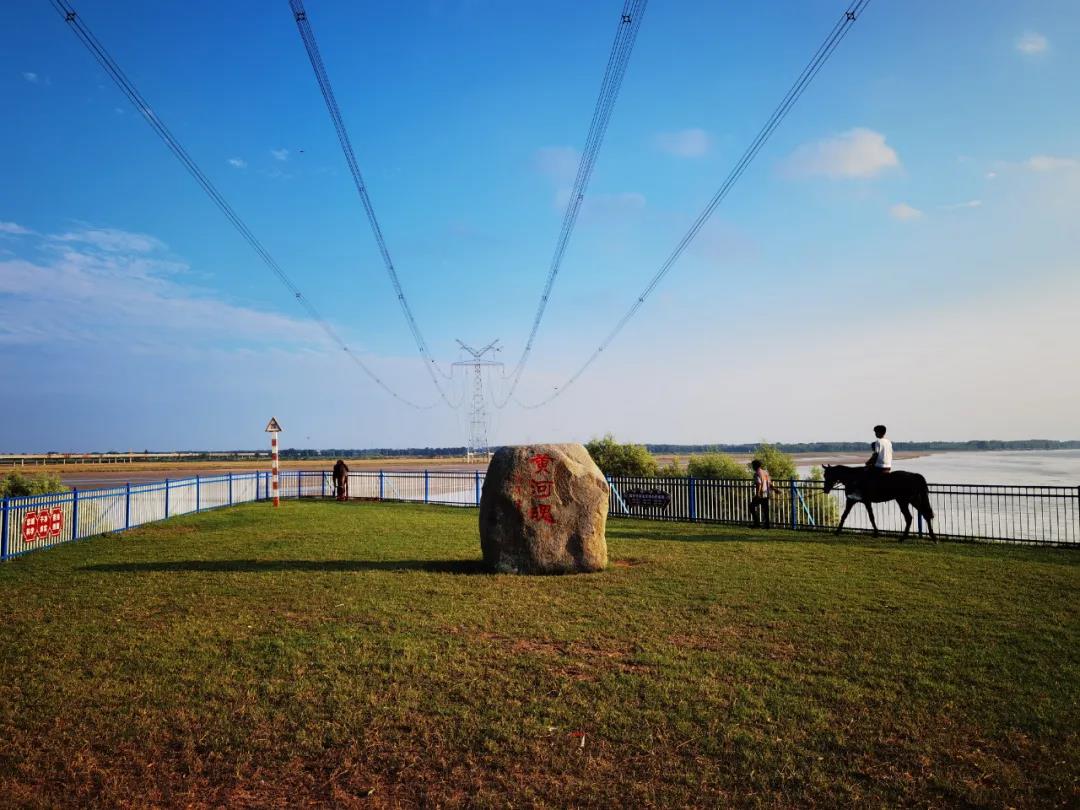 滔滔河水,滚滚而来,沙鸥云集,白帆点点。置身曹岗险工,即有“久在樊笼里,复得返自然”之感,可以体味黄河之水天上来的雄浑,可以感受百舸争流千帆过的壮美。在坝头的回湾内,经常会看到钓友们垂钓的身影,惬意倍生;不远处的黄河大桥横跨两岸,与险工交相辉映;护堤林茂盛繁密,蒲苇丛生,高低错落,时与水鸟相嘻,一个以黄河工程为依托的天然公园让你融归自然,流连忘返。漫步黄河岸边,绿色涌动、翠意盎然。绿荫空隙处,映入眼帘的是一望无际的浩瀚田野。山水城郭的闲情逸致,瞬间将城市的喧嚣与尘埃悉数荡涤。