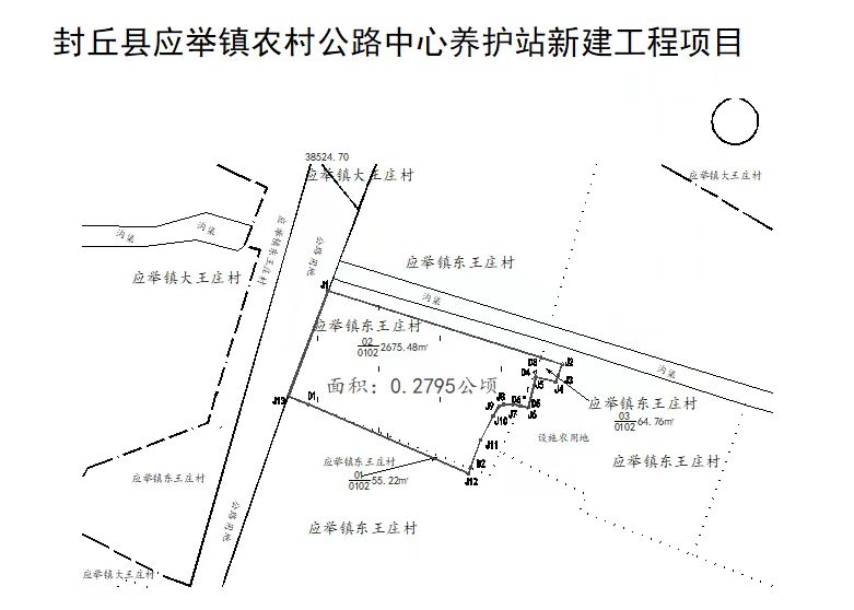 封丘县应举镇农村公路中心养护站新建工程项目建设用地,拟作为交通运输项目(0.2795公顷)用地。