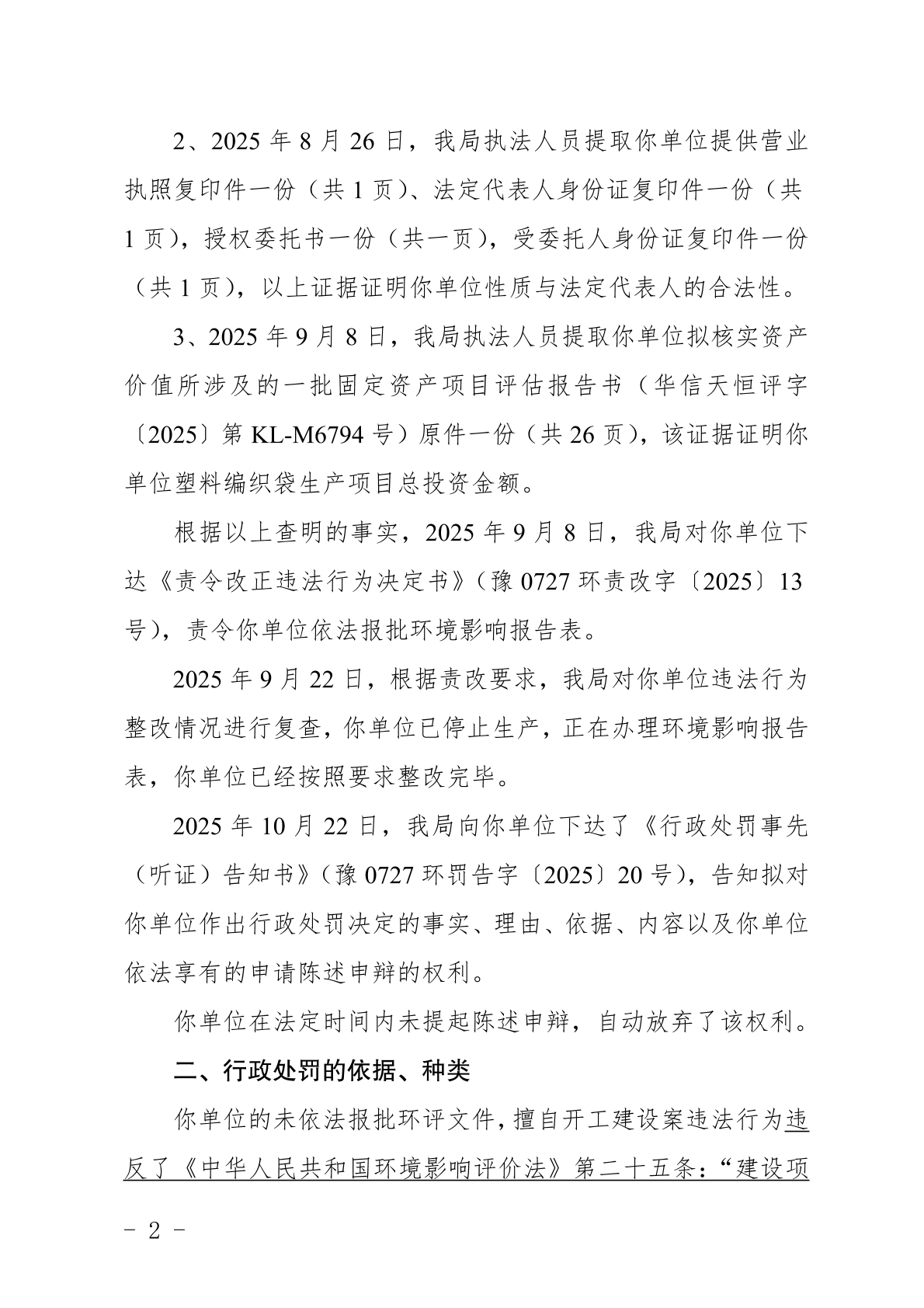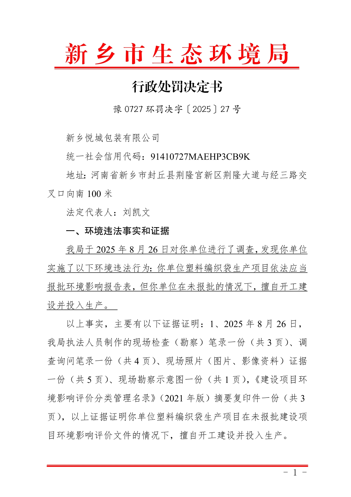 行政处罚决定书_豫 0727 环罚决字〔2025〕27 号