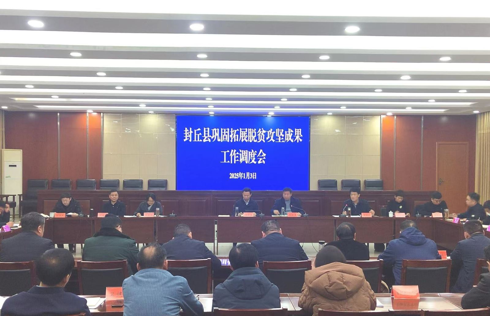 2025年1月3日,我县召开巩固拓展脱贫攻坚成果工作调度会。县长王振海出席会议并讲话,县委副书记殷国伟主持会议,县领导徐林锋、袁兆丹等参加会议。