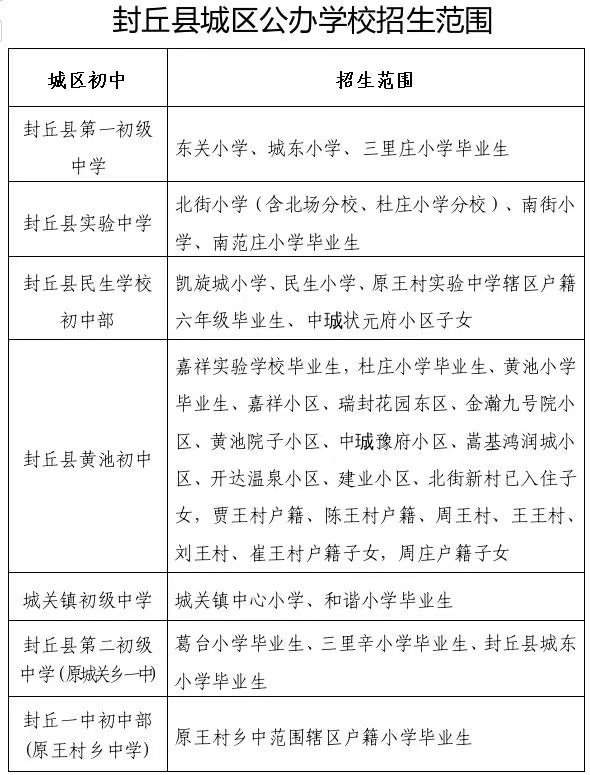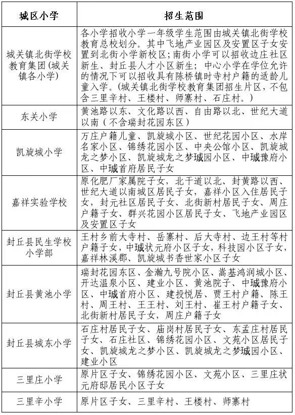 附件:2025年封丘县城区公办学校招生范围