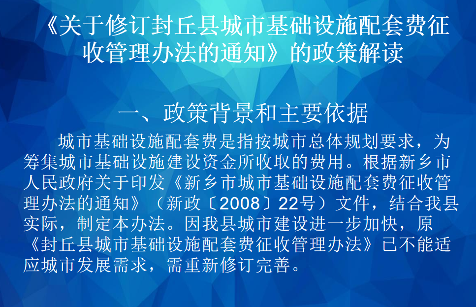 图解:封丘县人民政府办公室关于印发《封丘县城市基础设施配套费征收管理办法》的通知的政策解读