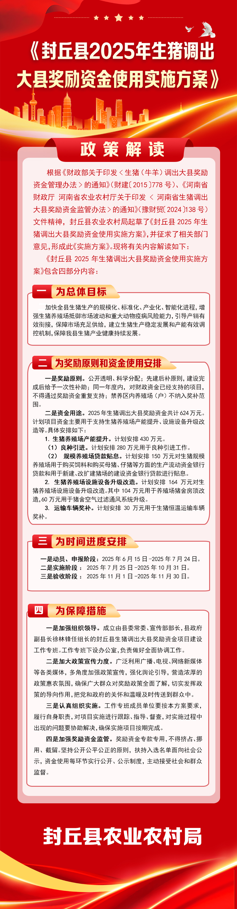 图解:封丘县人民政府办公室关于印发《封丘县2025年生猪调出大县奖励资金使用实施方案》的通知