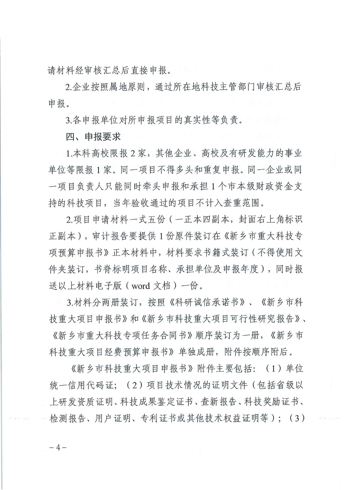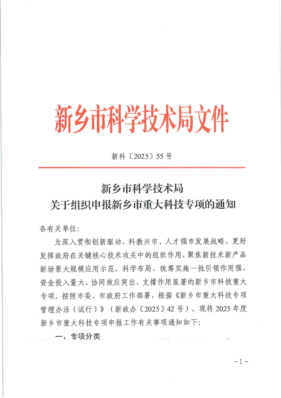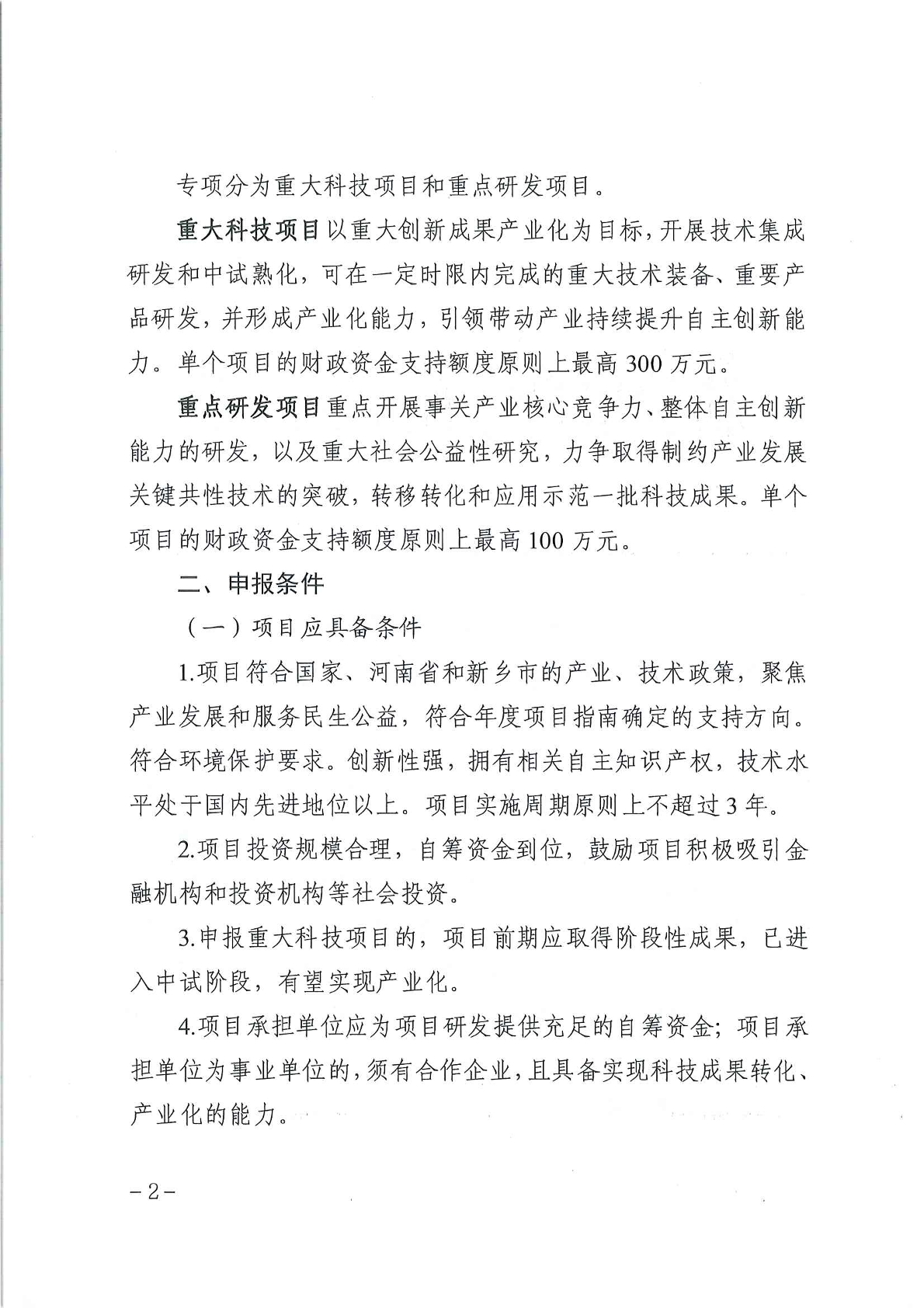 【项目申报流程】关于组织申报新乡市重大科技专项的通知