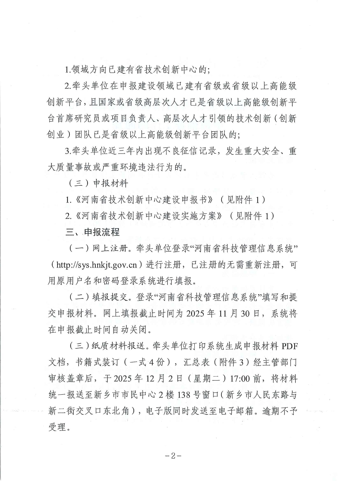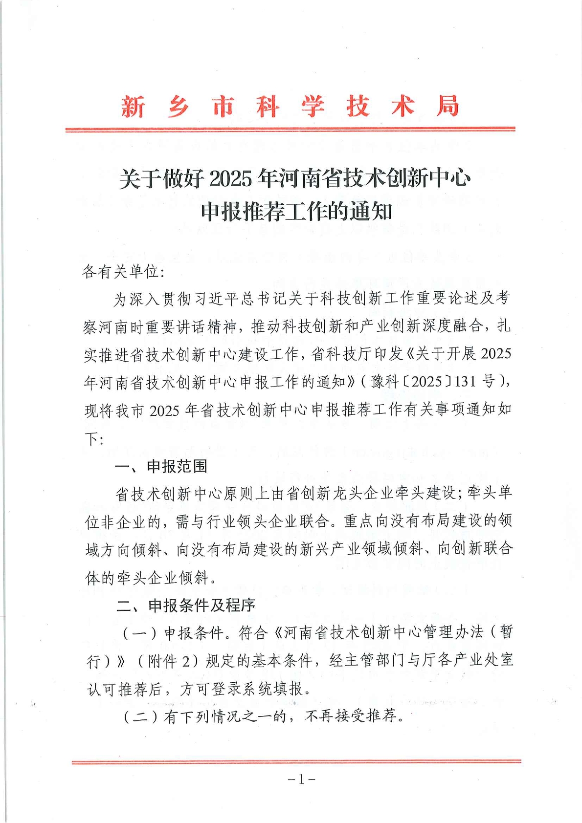 【项目申报流程】关于做好2025年河南省技术创新中心申报推荐工作的通知
