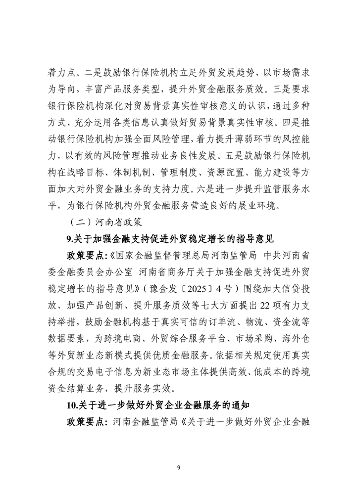 为深入贯彻落实中央金融工作会议精神,扎实做好金融“五篇大文章”,持续优化金融服务供给,助力实体经济破解融资难题,激发市场活力,新乡市特别策划推出金融政策与产品专题汇编系列宣传。本系列将围绕科技金融、绿色金融、普惠金融、养老金融、数字金融“五篇大文章”,以及外贸金融、消费金融等重点领域,分期梳理最新政策动向,精选金融机构特色产品,旨在为各类市场主体提供金融信息参考,推动金融资源与市场主体需求精准对接。第九期聚焦“外贸金融”领域推出金融政策与产品专题汇编手册。手册收录了国家和省、市关于外贸金融有关政策,以及14家金融机构35个金融产品。