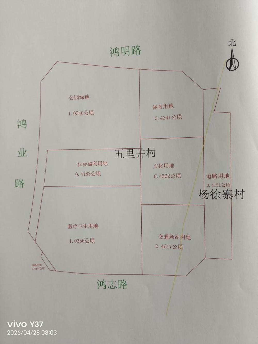 拟征收土地地块四东至杨徐寨村;西至五里井村;南至五里井村、杨徐寨村;北至五里井村、杨徐寨村,涉及城关乡五里井村、杨徐寨村集体土地。