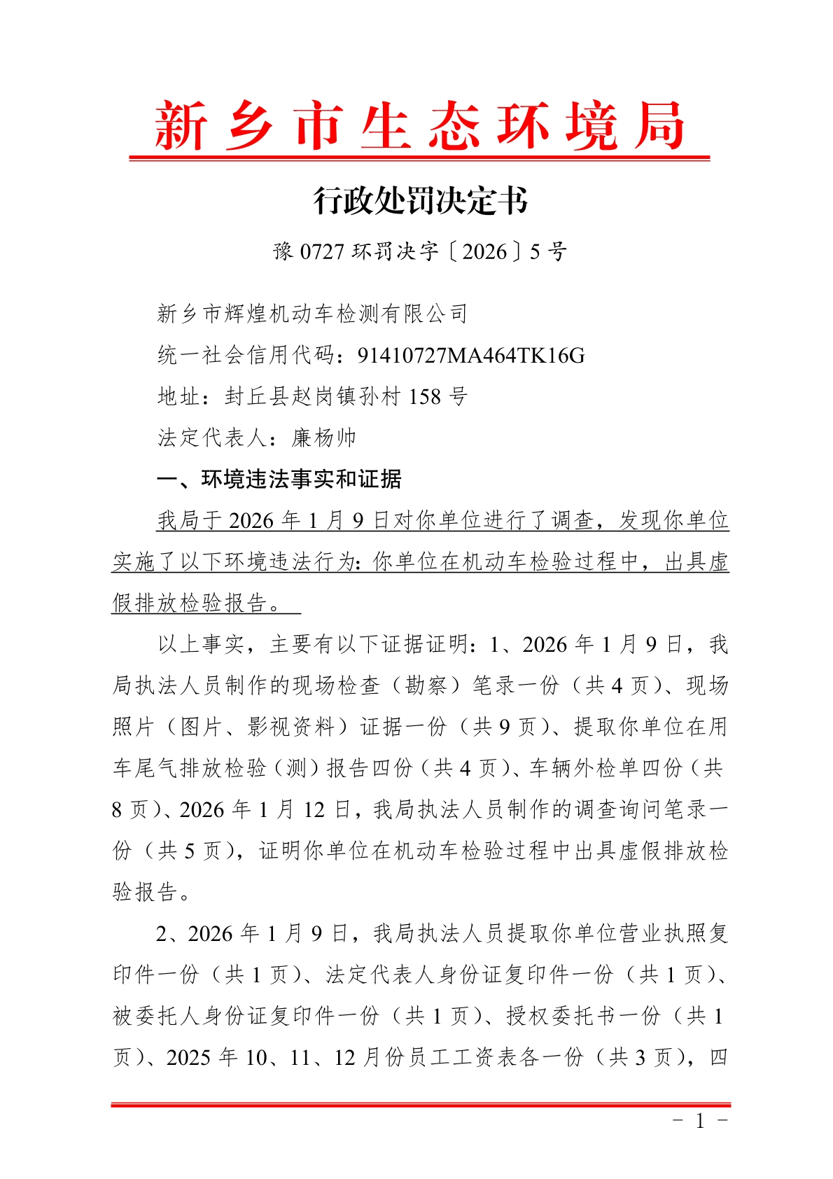 行政处罚决定书_豫 0727 环罚决字〔2026〕5 号